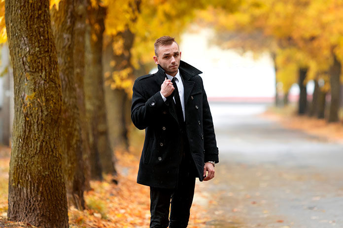 W szafie każdego mężczyzny znaleźć powinien się elegancki, czarny lub grafitowy płaszcz. Będzie on idealnie nadawał się do garnituru, a uzupełniony szalem w odcieniach na przykład niebieskiego czy zieleni nabierze jeszcze większego szyku. Płaszcz sprawdzi się idealnie na imprezy kalibru takiego jak wesele czy chrzciny, podczas wyjścia do teatru, opery. Powinien kończyć się w okolicy kolana. Może mieć stójkę, ale znacznie lepiej będzie wyglądał z kołnierzem takim jak w marynarkach. Świetnym dodatkiem do płaszcza będą skórzane rękawiczki.