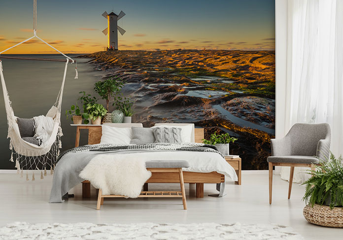 Sypialnia w rustykalnym stylu i ekologicznym duchu powinna być urządzona harmonijnie i z umiarem, obojętnie czy decydujemy się na taki styl w domu na wsi, czy w apartamencie w mieście. W takiej sypialni nie powinno zabraknąć naturalnych materiałów z drewnem na czele, oprócz tego powinny się pojawić naturalne tkaniny w kolorach beżu, brązu, szarości. Meble i pozostałe wyposażenie powinna cechować prostota, pożądane są akcesoria z wikliny. I tu właśnie doskonałym uzupełnieniem będzie fototapeta. Malownicza latarnia morska usytuowana tuż nad brzegiem, widok na słynne francuskie miasteczko Saint-Tropez to znakomita fototapeta do sypialni. Morze w odcieniach szarości i nieco staromodna latarnia będą harmonizować z rustykalnym wystrojem i podkreślą “wiejski” charakter sypialni. Zresztą prawie każda fototapeta morze pasuje do stylu rustykalnego.
