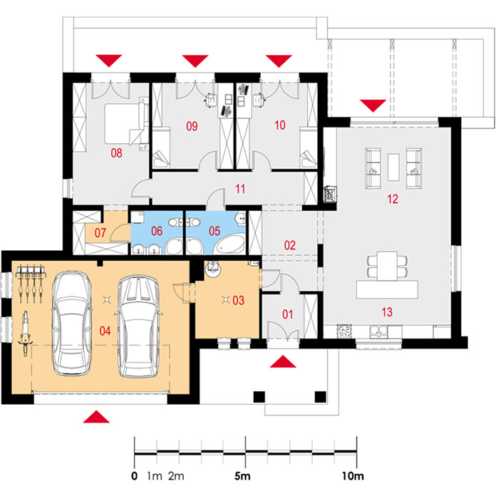 Najczęściej garderoba w projekcie domu jest umieszczona przy sypialni gospodarzy. Przejście do garderoby może odbywać się bezpośrednio z sypialni – wtedy będzie ona łatwo dostępna. Również wejście do garderoby może odbywać się z korytarza.