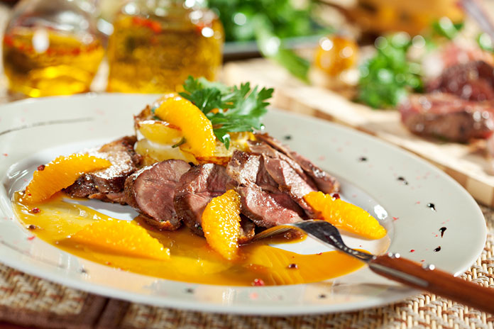Terrina to rodzaj pasztetu, którego nieodłącznym elementem jest brandy. Danie pochodzi z Francji, jednak coraz częściej można ją spotkać na polskich stołach. W przeciwieństwie do tradycyjnego pasztetu terrina nie jest pieczona tradycyjnie, a w kąpieli wodnej. Do jej przygotowania będziemy potrzebowali rosołu drobiowego, piersi kaczki, wędzonego boczku, karkówki wieprzowej i wątróbki drobiowej. Danie uświetnią aromatyczne przyprawy, takie jak nasiona kolendry, cynamon, gałka muszkatołowa oraz pistacje i suszona żurawina. Niebo w gębie!
